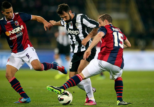 Nửa sau hiệp 1 lần lượt Claudio Marchisio, Andrea Pirlo, Mirko Vucinic tạo ra thêm những pha tấn công tăng cường sức ép lên phần sân của đội chủ nhà. Tuy nhiên hàng thủ Bologna vẫn chơi rất tập trung trong suốt 45 phút đầu tiên.