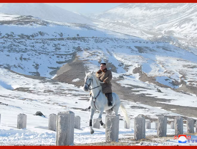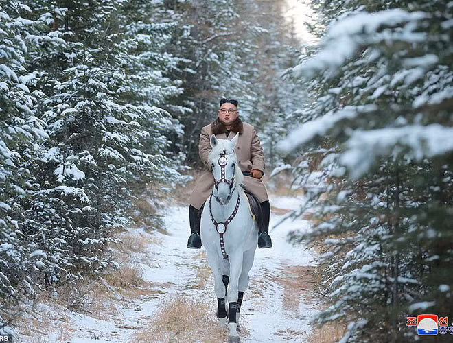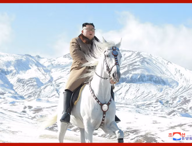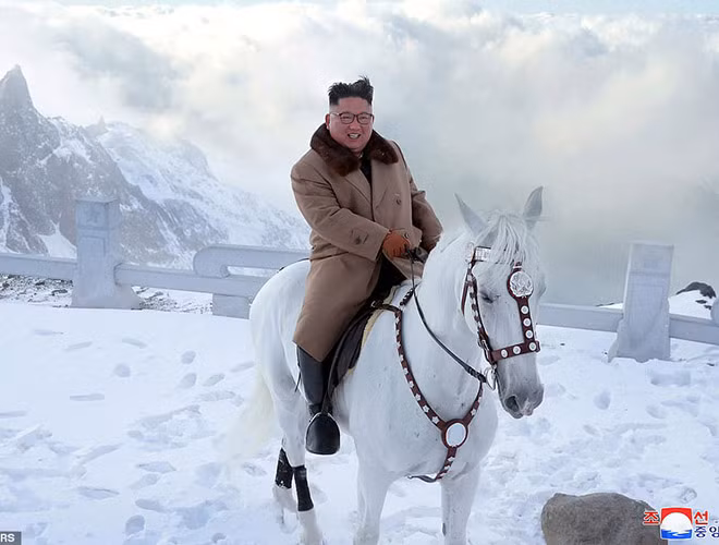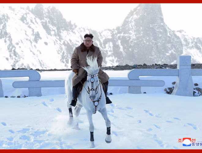 KCNA bất ngờ tung bộ ảnh ông Kim Jong-un cưỡi bạch mã trên những ngọn núi phủ đầy tuyết