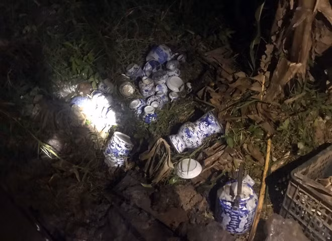Sau khi trộm cắp được số cổ vật của chị H. Sơn mang ra bãi đất trống gần nhà trọ, sát đường Phạm Văn Đồng giấu