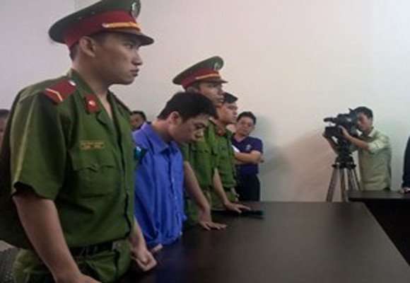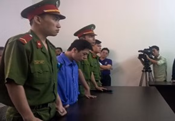 Bị cáo Nguyễn Văn Tú (áo xanh) tại tòa