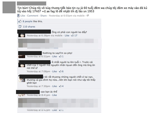 Đáng lẽ đây cũng chỉ là một vụ tai nạn bình thường. Nhưng vào thời điểm diễn ra đám tang của ông Giảng thì cư dân mạng phát hiện ra một người có nikck name là “kẹo mút chơi bời” đã tung lên mạng những lời lẽ “máu lạnh”, thản nhiên đùa cợt về cái chết của ông Nguyễn Hữu Giảng. Cho đến thời điểm này thì thông tin trên Facebook đó đã bị xóa do không chịu đựng nổi sự công kích của cộng đồng mạng. Tại cơ quan điều tra Linh khai nhận mình chính là người có nick name “Kẹo mút chơi bời” đã khoe “chiến tích” tông xe chết người trên một mạng xã hội vào ngày 3/1.