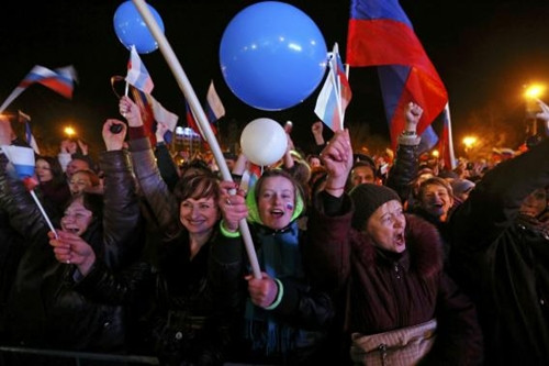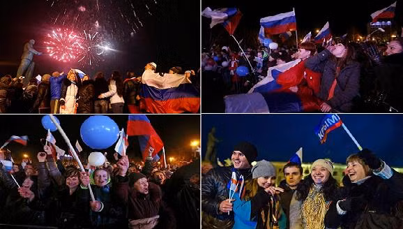 Sau khi có kết quả kiểm phiếu sơ bộ, hàng trăm nghìn người dân Crimea đã đổ ra đường ăn mừng, mặc dù Ủy ban tổ chức trưng cầu dân ý vẫn chưa công bố báo cáo cuối cùng. Tại Simferopol, thủ phủ của Crimea, khoảng gần 20.000 người đã tụ tập ở quảng trường Lenin, vẫy cờ Nga và Crimea; hát quốc ca Nga và tổ chức hòa nhạc để ăn mừng kết quả cuộc trưng cầu dân ý.
