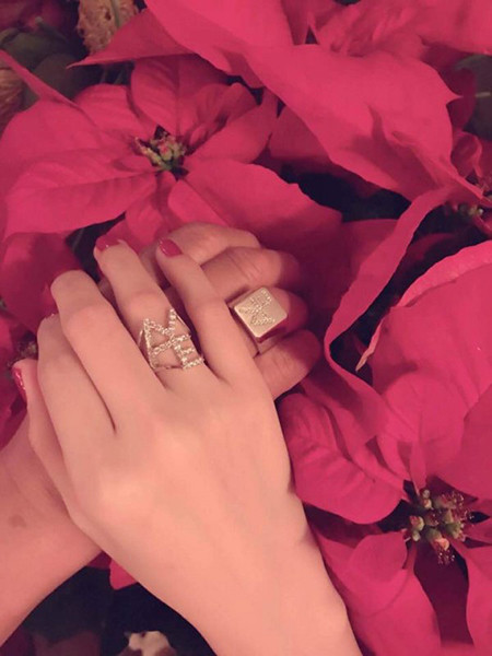 Hình ảnh Ngọc Trinh đeo nhẫn đôi với tỉ phú Hoàng Kiều được con dâu ông chia sẻ trên Facebook cá nhân