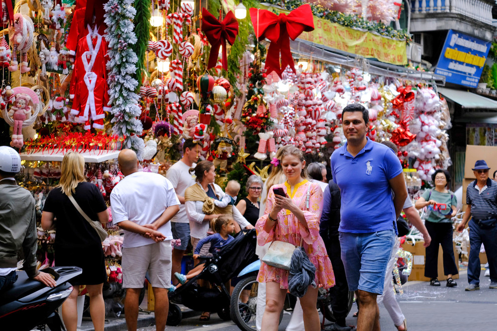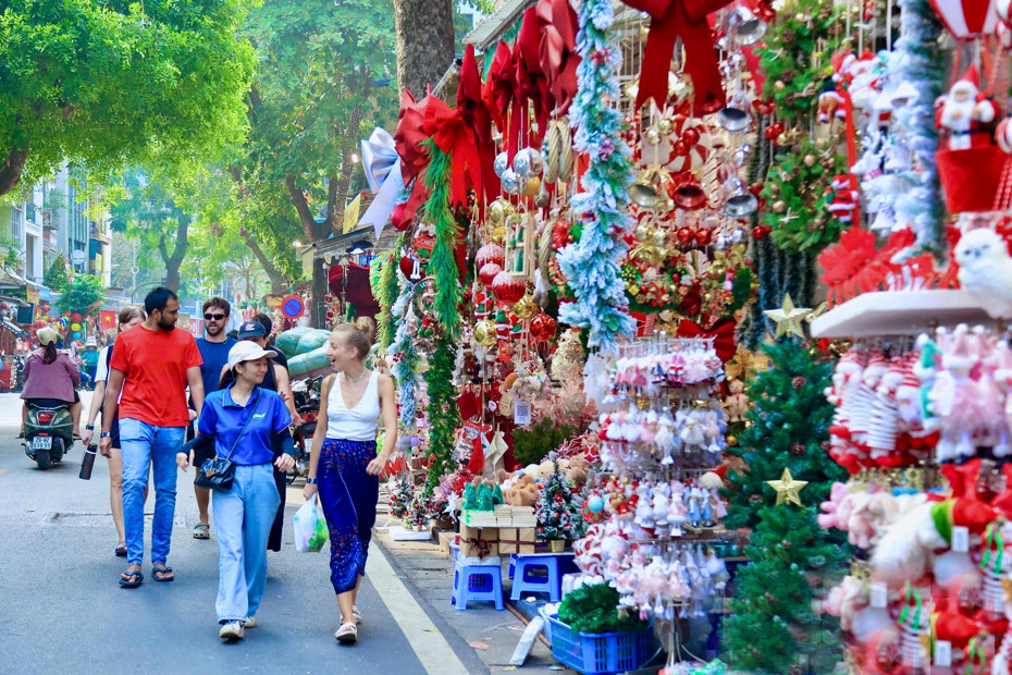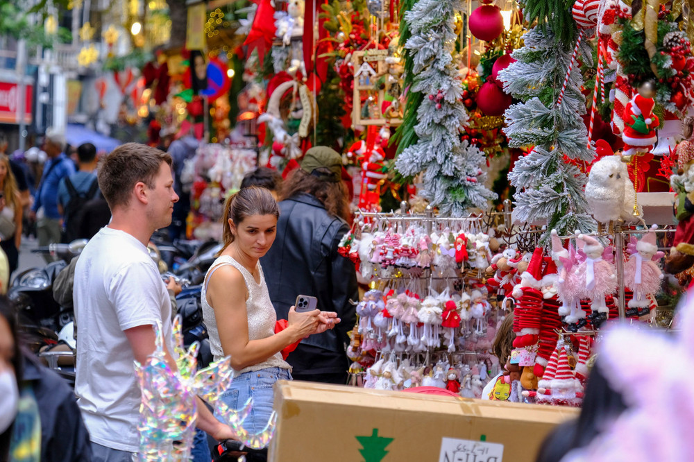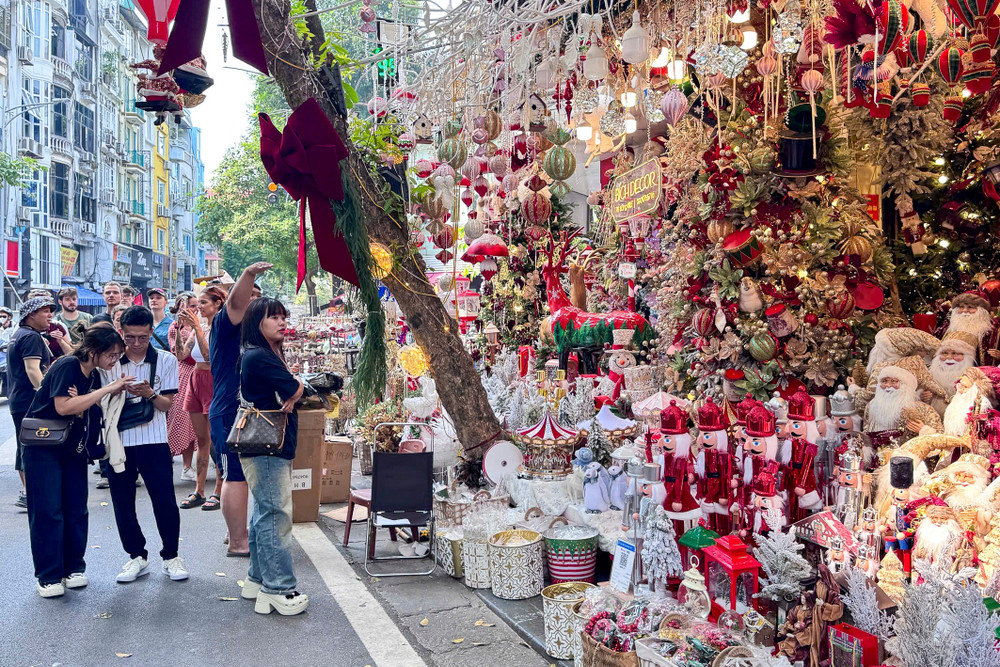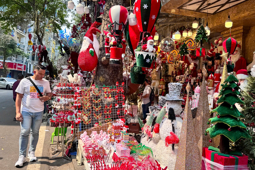 ANTD.VN - Gần 1 tháng nữa là đến Lễ Giáng sinh 2024, tuy nhiên không khí mua sắm trên phố Hàng Mã (Hoàn Kiếm, Hà Nội) càng ngày càng nhộn nhịp, náo nhiệt. Sự đa dạng về chủng loại và màu sắc của các mặt hàng thu hút sự quan tâm của nhiều du khách trong nước và nước ngoài.