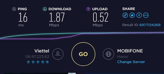 Cụ thể, tối 18-1, dù chỉ mở các trang báo tiếng Việt thông thường để đọc nhưng cũng tốn nhiều thời gian. "Tôi kiểm tra thấy tốc độ Upload chỉ đạt 0,52Mbps, tốc độ download là 1,87 Mbps. Chỉ tải 1 file ảnh dưới 100 Kb mà mất ít nhất 30 giây. Tốc độ này thấp hơn cam kết của gói cước rẻ nhất".