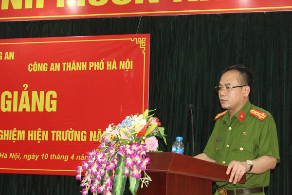 Đại tá Nguyễn Thanh Tùng, Phó Giám đốc CATP Hà Nội phát biểu tại hội nghị