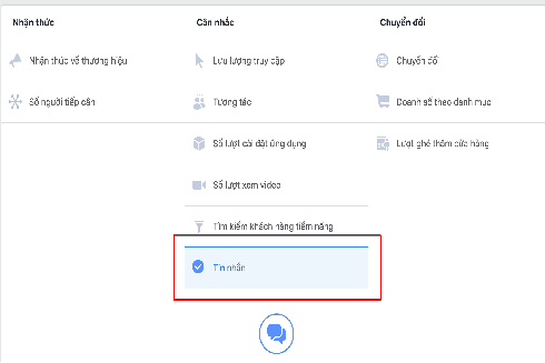 Ở giai đoạn tiếp theo, doanh nghiệp lựa chọn chạy chuyển đổi để bán được nhiều sản phẩm hơn. Với hình thức chạy chuyển đổi, quảng cáo cho phép đặt đường truyền dẫn về trang đích (Landing Page) hoặc vào hộp tin nhắn giới thiệu sản phẩm của doanh nghiệp.