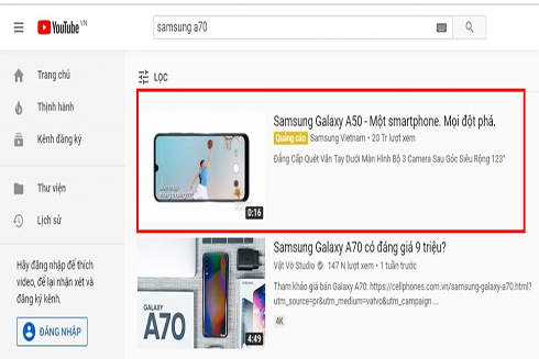 Hình thức “YouTube Promoted Videos” cho phép video quảng cáo hiển thị bên cạnh các video mà người dùng đang tìm kiếm