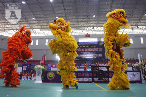 Tiết mục biểu diễn múa Lân - Rồng của các vận động viên tham dự giải