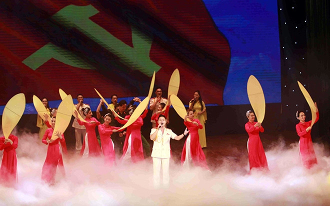 Một tiết mục nghệ thuật do các nghệ sĩ của Nhà hát CAND biểu diễn tại lễ khai mạc liên hoan