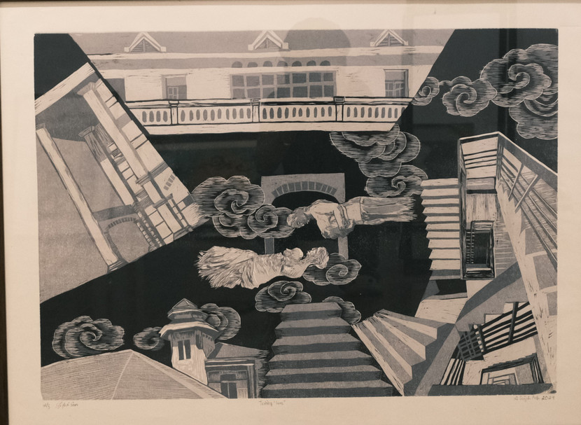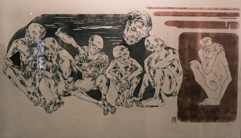 | Tác phẩm sơn mài "Đáy vực" của sinh viên Mai Hoa đoạt giải Nhất triển lãm mỹ thuật sinh viên năm 2025. |