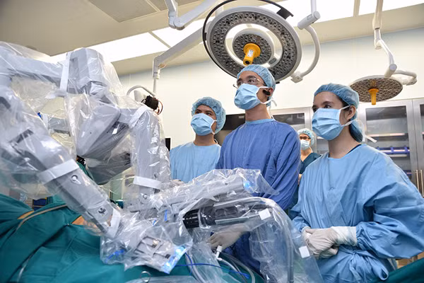 Sau 1 năm chuẩn bị, với đội ngũ chuyên gia trình độ cao, được đào tạo tại các Trung tâm phẫu thuật robot lớn trên thế giới (Pháp, Hàn Quốc, Hồng Kông…), Vinmec đã làm chủ được kỹ thuật phẫu thuật robot. Trong đó, việc điều trị các bệnh lý tiêu hóa, tiết niệu - sinh dục, phụ khoa đạt tỉ lệ thành công lên tới 95%.