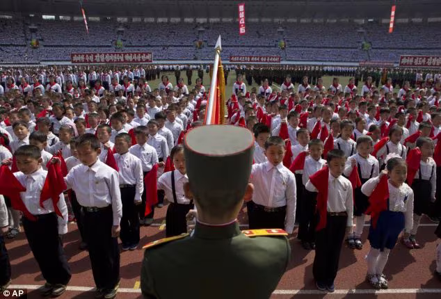 Các em học sinh Triều Tiên trong một lễ chào cờ