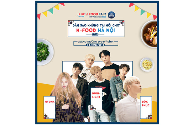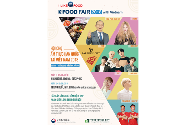 Nằm trong các hoạt động thúc đẩy thương mại và giao lưu văn hóa xã hội giữa hai quốc gia, Tổng công ty Phân phối Nông thủy sản và thực phẩm Hàn Quốc aT phối hợp với Bộ Nông nghiệp và Thực phẩm Hàn Quốc tổ chức “Hội chợ Ẩm thực Hàn Quốc tại Hà Nội năm 2018” (2018 HANOI K FOOD FAIR) trong hai ngày mùng 9 và mùng 10 tháng 6 tại Quảng trường SVĐ Mỹ Đình. Vé vào cửa hoàn toàn miễn phí.