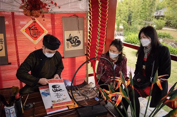 Một trong những hoạt động được các gia đình háo hức nhất là xin chữ ông đồ - một truyền thống tốt đẹp nhằm cầu may mắn và bình an trong năm mới. Nhiều gia đình năm nay xin chữ với nguyện cầu dịch bệnh sớm qua đi và cuộc sống bình an sẽ đến với mọi gia đình.