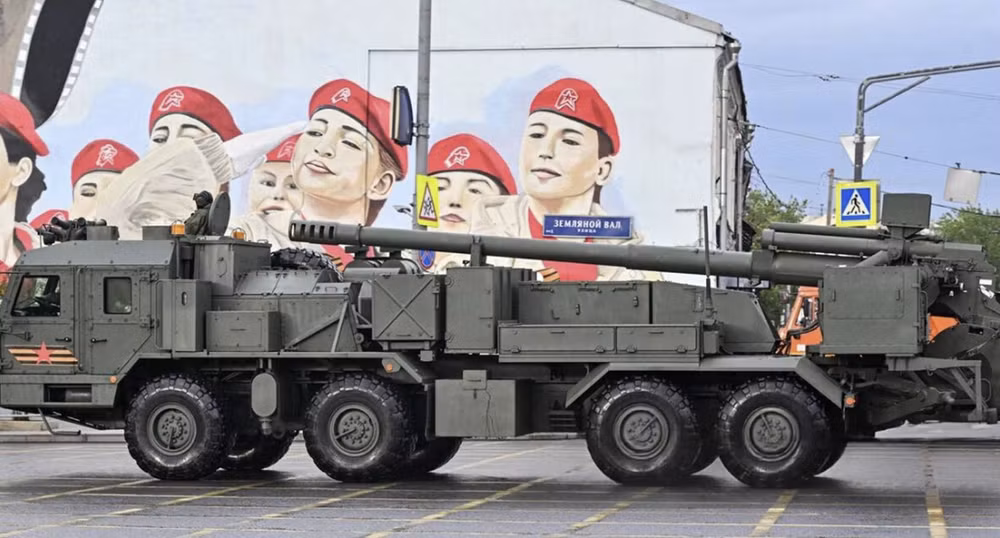 ANTD.VN - 2S44 Giatsint-K là pháo tự hành 152 mm thế hệ mới của Nga, kết hợp hỏa lực mạnh của pháo Giatsint với khung gầm bánh lốp cơ động cao, nhằm đáp ứng yêu cầu tác chiến cường độ lớn và phân tán trên chiến trường hiện nay.