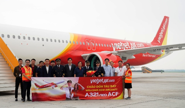 Tàu bay A321neo ACF về tới sân bay Tân Sơn Nhất sáng nay và sẽ được đưa vào khai thác ngay để phục vụ khách hàng trên các chặng bay tầm trung mà hãng hàng không thế hệ mới Vietjet đang khai thác.