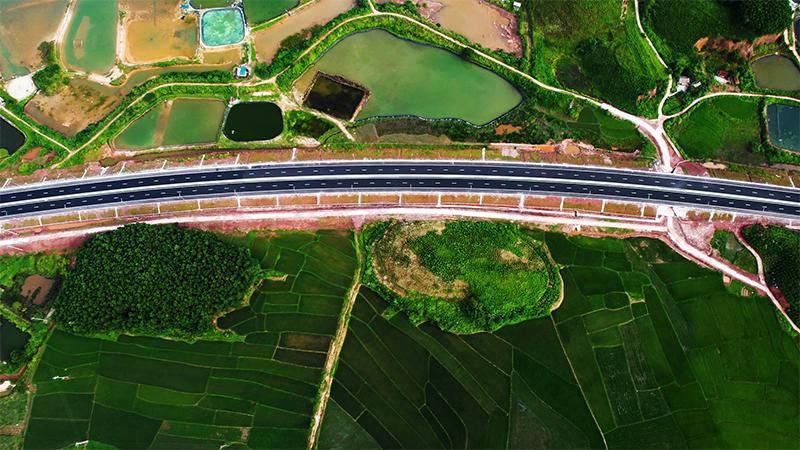 Sự pha trộn giữa nét hiện đại của tuyến cao tốc nghìn tỷ, của sự chỉn chu trong thi công với sự bình yên, mộc mạc của thửa ruộng đổi sắc suốt 4 mùa tạo nên bức tranh thiên nhiên vừa truyền thống, vừa hiện đại lôi cuốn đến say lòng.