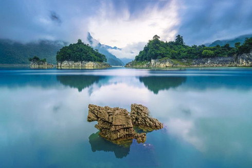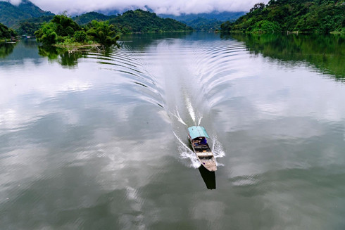 ANTD.VN - Hồ Na Hang (Na Hang, Tuyên Quang) được ví như một bức tranh thủy mặc làm say đắm biết bao trái tim của du khách đến đây. Tên gọi na hang nghĩa là“ruộng cuôi”, lòng hồ được bao quanh bởi 99 ngọn núi nhấp nhô trùng điệp, tô điểm vào đó là những dòng thác tuôn đổ trắng xóa giữa đại ngàn xanh thẳm được ví như vịnh Hạ Long giữa đại ngàn.