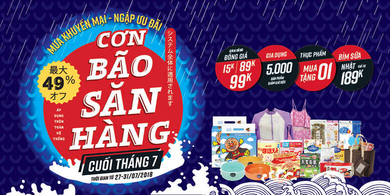 Hãy sẵn sàng cho đợt “Mưa khuyến mại – Ngập ưu đãi – Cơn bão săn hàng cuối tháng 7” trên toàn hệ thống siêu thị hàng Nhật nội địa Sakuko Japanese Store. Diễn ra từ ngày 27-31/07/2018, đây là đợt xả kho hàng Nhật đầu tiên trong năm 2018 với hàng ngàn mẫu sản phẩm thiết yếu được bán ra với vô vàn ưu đãi và quà tặng kèm.