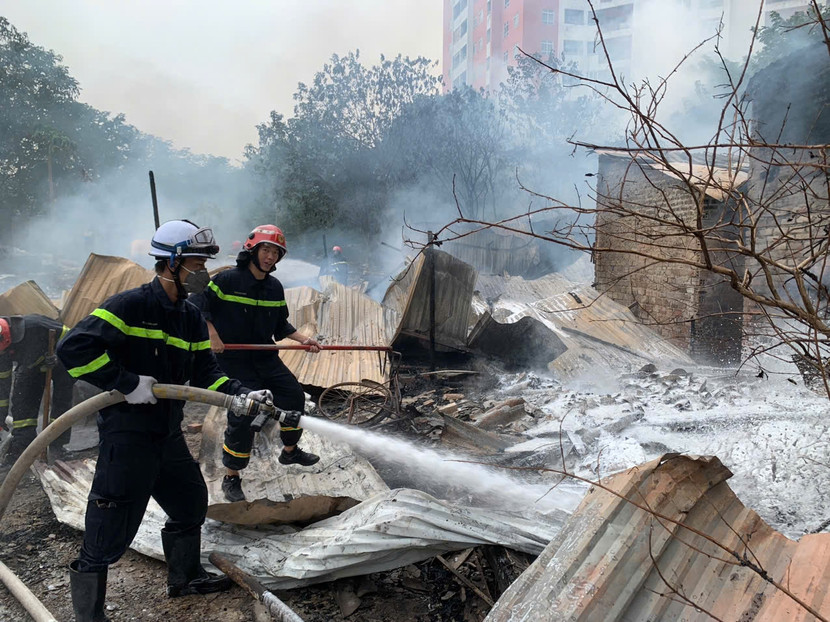 Theo chỉ huy CAP Trung Văn, bắt nguồn từ việc cháy bãi rác tại địa bàn giáp ranh giữa quận Nam Từ Liêm và quận Hà Đông, ngọn lửa đã lan nhanh vào khu nhà tạm tại địa chỉ trên. Chỉ sau ít phút, lửa cháy ngùn ngụt khiến 2 căn nhà tạm bốc cháy dữ dội.