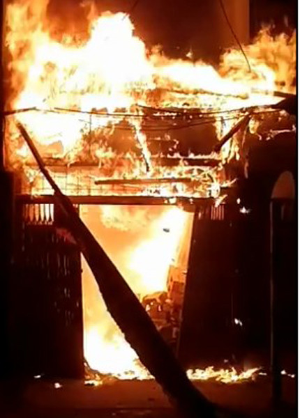 Vào khoảng thời gian trên, một số nhà lân cận phát hiện lửa cháy lớn tại ngôi nhà 1.060 Đê La Thành. Ngọn lửa nhanh chóng lan sang một số nhà lân cận, kèm theo nhiều tiếng nổ nhỏ khiến người dân hoảng sợ.