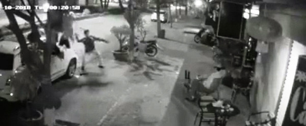 Hình ảnh trích xuất từ camera cho thấy có đối tượng đang ném vật gì đó về hướng quán cà phê