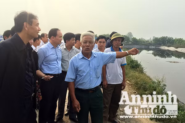 Phó Bí thư Thành ủy Đào Đức Đoàn nghe người dân phản ánh tại bãi xử lý rác ở xã Đông Lỗ, huyện Ứng Hòa