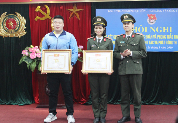 Đại úy Bạch Quốc Tuyên, Phó Bí thư Đoàn Bộ Công an tặng Bằng khen của Đoàn thanh niên Bộ Công an cho các cá nhân có thành tích xuất sắc