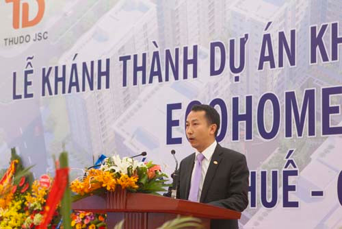 Ông Đỗ Đức Đạt, Tổng Giám đốc Công ty cổ phần đầu tư và thương mại Thủ đô báo cáo về dự án Ecohome 1