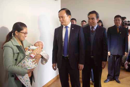 Phó Chủ tịch UBND TP Hà Nội, ông Nguyễn Ngọc Tuấn thăm một gia đình vừa nhận nhà và chuyển về sinh sống tại Ecohome 1