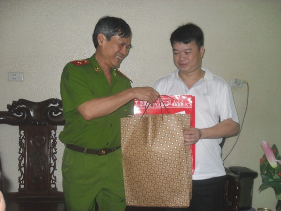 Thiếu tướng Trần Thùy tặng quà cho đồng chí Vương Hồng Sâm