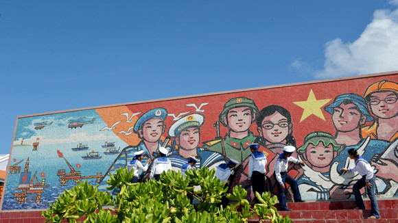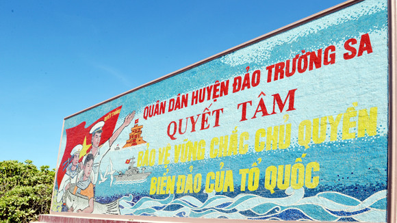 Họa sĩ Nguyễn Thu Thuỷ và Nguyễn Hoàng Tùng đã chỉnh sửa gương mặt, tư thế và trang phục của các nhân vật trong tranh lại cho đẹp hơn, sắc nét hơn, đồng thời thay thế bằng chất liệu gốm sứ để bức tranh trường tồn với thời gian. Bức tranh cổ động với hàng chữ lớn “Quân dân huyện đảo Trường Sa quyết tâm giữ vững chủ quyền biển đảo Tổ quốc”. Được đặt ở vị trí đối xứng hai bên cầu cảng đảo Trường Sa. Sau “Con đường gốm sứ ven sông Hồng” (năm 2010), hoạ sĩ Nguyễn Thu Thuỷ tiếp tục các ý tưởng nối dài Con đường gốm sứ tới Trường Sa với Lá cờ Tổ quốc bằng gốm lớn nhất Việt Nam và 4 bức tranh gốm ca ngợi hình tượng người chiến sĩ hải quân góp phần khẳng định chủ quyền biển đảo Việt Nam.