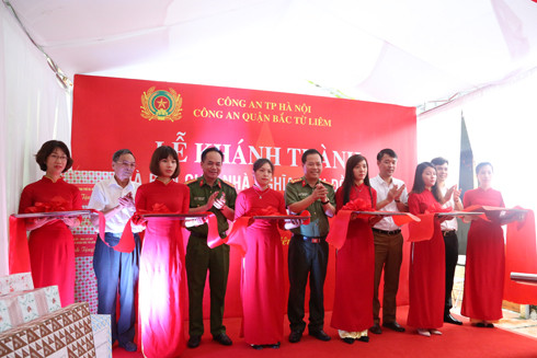 Đại tá Đoàn Ngọc Hùng, Phó Giám đốc CATP Hà Nội cùng đại diện lãnh đạo UBND quận Bắc Từ Liêm, CAQ Bắc Từ Liêm, UBND phường Đức Thắng và thân nhân liệt sỹ Nguyễn Văn Tiếp cắt băng khánh thành nhà tình nghĩa