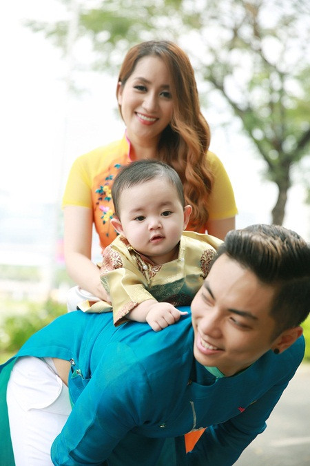 Nhân dịp năm mới, gia đình Khánh Thy - Phan Hiển và con trai đầu lòng đã cùng nhau thực hiện bộ ảnh với những chiếc áo dài Xuân rực rỡ sắc màu để kỷ niệm. Bé Kubi cũng được ba mẹ chuẩn bị cho bộ áo dài để "tông xuyệt tông" với nhau. Dù mới 7 tháng tuổi nhưng bé Kubi khá dạn dĩ, không nhát người lạ và rất chịu "hợp tác" với ba mẹ khi chụp ảnh.