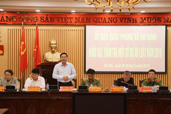 Thay mặt đoàn khảo sát, Trung tướng Trần Đình Nhã, Trưởng đoàn đã nêu lên những yêu cầu của đoàn khảo sát đối với thành phố Hà Nội trong báo cáo kết quả thực hiện các Pháp lệnh công an xã; Pháp lệnh Quản lý sử dụng vũ khí, vật liệu nổ, công cụ hỗ trợ; Pháp lệnh Cảnh vệ, nhấn mạnh cần chỉ rõ những bất cập cần khắc phục sửa chữa các pháp lệnh này.