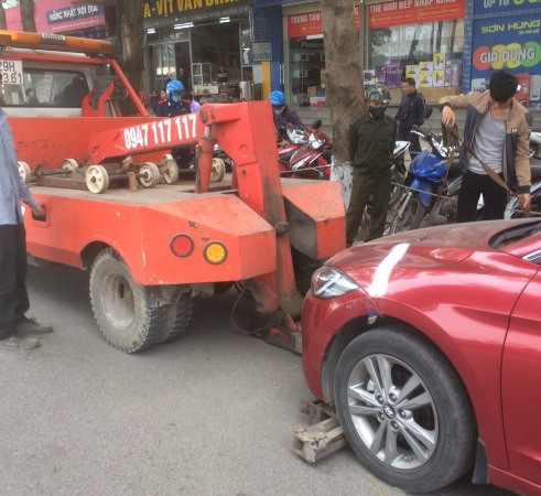 Xe cẩu kéo được trưng dụng để xử lý ô tô dừng đỗ sai quy định