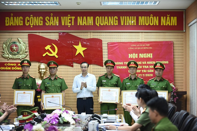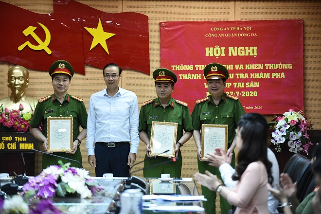 Ông Đào Đức Toàn, Phó Bí thư Thành uỷ Hà Nội; Đại tá Nguyễn Thanh Tùng, Phó Giám đốc - Thủ trưởng Cơ quan Cảnh sát điều tra CATP và lãnh đạo Quận ủy, UBND quận Đống Đa dự buổi khen thưởng.