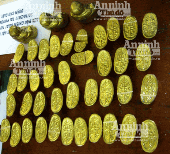 Vàng giả thu được của các đối tượng lừa đảo người Trung Quốc