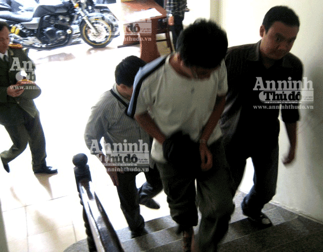 Công an Hà Nội dẫn giải Nguyễn Anh Vũ (áo phông trắng) về trụ sở cơ quan điều tra