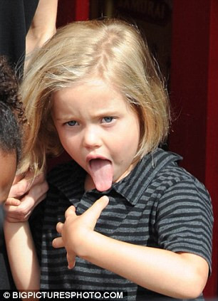 Con gái Shiloh thè lưỡi bắt chước bố Brad Pitt