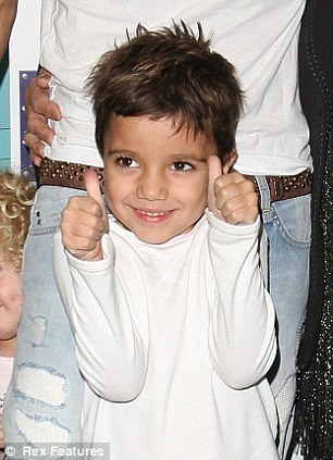 Peter Andre cùng giơ ngón tay cùng cậu con trai Junior