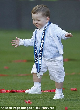 Wayne Rooney cùng con trai Kai tạo dáng trên sân