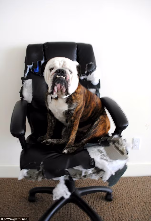 Chiếc ghế da máy tính bị chú chó này ngoạm tơi tả