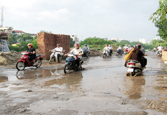 Đường 70 qua xã Tây Mỗ, huyện Từ Liêm, Hà Nội nối với Đại lộ Thăng Long bằng cây cầu vượt. Nhưng, cầu và đường lên cầu vượt đã thi công đưa vào sử dụng từ lâu, còn đường 70 trong tình trạng sụt lún đầy những “ổ gà”, “ổ voi”. Hai bên đường đất, đá chất thành từng đống cao và cỏ dại mọc um tùm...
