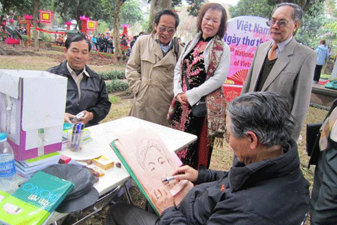 Nhà văn Trần Nhương vẽ chân dung trong Văn Miếu