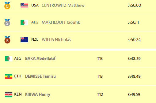 Còn đây là thành tích thi đấu vòng loại 1.500m tại Olympic, tất cả các VĐV vượt qua vòng này đều có thông số cao hơn HCV Paralympic của Baka, và cao hơn phần thi bán kết, chung kết sau đó của chính họ