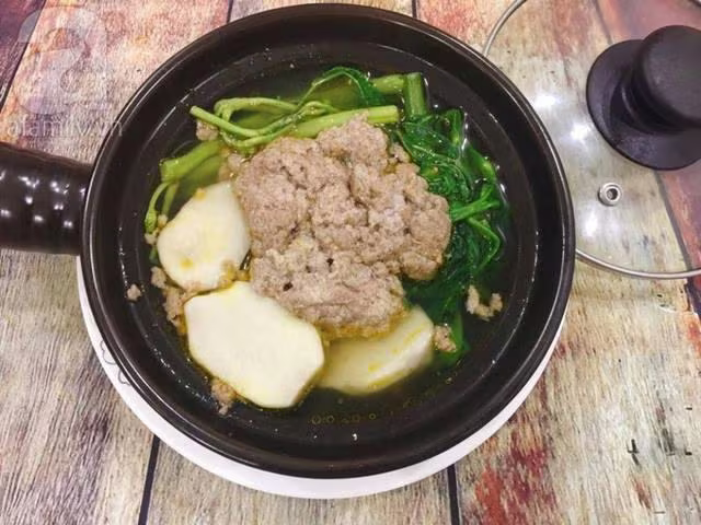 Khi bắt đầu sôi thì lớp thịt cua nổi lên, lấy đũa khuấy nhẹ dưới đáy nồi cho gạch nổi hết và hớt ra bát để riêng. Nếu muốn gạch cua cứng, đóng thành từng tảng thì có thể lấy muôi ấn nhẹ. Ở phần nước còn lại sẽ được nêm mắm muối cho vừa rồi đổ khoai sọ đã làm sạch, xắt miếng vừa ăn vào đun nhỏ lửa. Khoai mềm thì cho rau muống vào, rau muống chín được 5 phần thì cho tiếp rau rút, đun thật sôi thì đổ gạch cua và phần gạch chưng vào và tắt bếp. Như thế là đã hoàn thành món canh hảo hạng. Dĩ nhiên, bữa cơm sẽ ngon hơn nếu có thêm cà pháo muối nén, mặn mặn chua chua giòn giòn.
