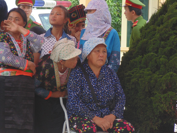 Ngay từ sáng sớm, đông đảo nhân dân các dân tộc đã kéo đến trụ sở UBND xã Mường Phăng, nơi diễn ra phiên tòa. Sân UBND xã chật cứng người, chen lẫn vào đó, một người đàn bà có vẻ mặt thất thần, tay dắt tay bế 3 đứa trẻ gắng hết sức mình lách qua từng khe người để tiến sát về phía bị cáo nhưng bị lực lượng bảo vệ phiên tòa ngăn lại. Bởi theo quy định không được phép đưa trẻ em dưới 16 tuổi vào khu vực xét xử, trừ trường hợp là người liên quan trực tiếp đến vụ án.