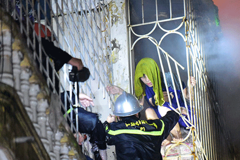 Công tác chữa cháy, cứu hộ diễn ra khó khăn do toàn bộ các tầng trên của ngôi nhà được hàn lồng sắt bên ngoài, ngọn lửa bùng phát mạnh kèm theo khí độc dày đặc do chất chất cháy chủ yếu là nhựa, nylon...